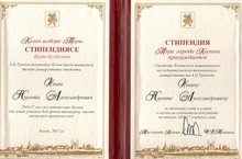 21 декабря 2017 года в Казанской ратуше состоялось ежегодное вручение именных стипендий Мэра города Казани. Конкурс на соискание именных стипендий проводится с 1994 года. В этом году оргкомитет принял свыше 150-и заявок, 103 участника прошли очный этап. В результате были отобраны 70 победителей: учащиеся школ, детских музыкальных и художественных школ, школ искусств, студентов ссузов и вузов, аспирантов.
