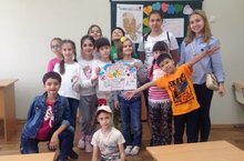 После зарядки и завтрака ребята собрались в актовом зале и встретили гостей из магазина "Британия". Представители магазина показали детям новые интересные книги на английском языке, рассказали о новых конкурсах, в которых можно принять участие.