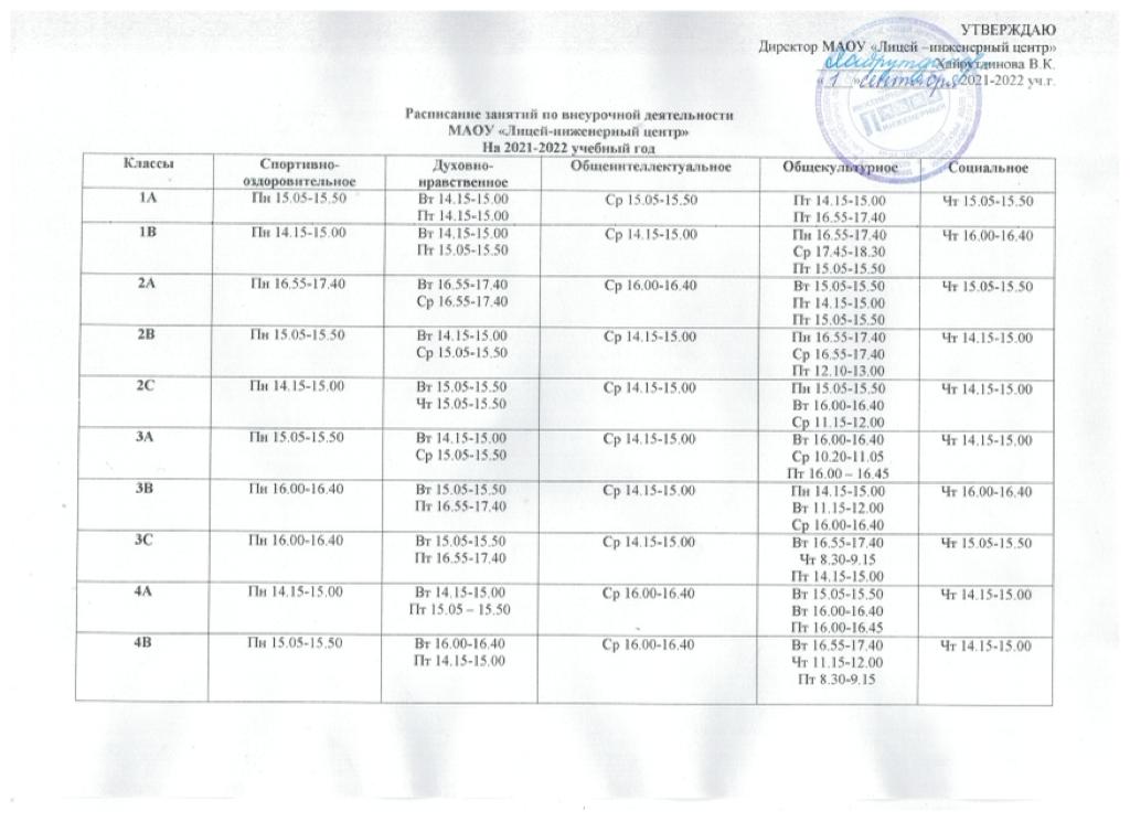 Расписание внеурочной деятельности 1-4 классов на 2023-2024 учебный год