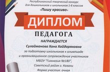 Укытучылар "Пишу красиво" республика иҗат бәйгесендә 6 нчы сыйныф укучылары җиңүче һәм призёр булдылар. (Җитәкчеләре Х.Х.Сөләйманова). Аларны җиңүләре белән котлыйбыз.