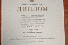Завершилась Республиканская олимпиада по родному татарскому языку. У нас два призёра: Закирова Аселя и Абдуллина Айгиза.