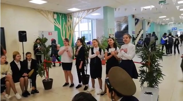 Сегодня с утра девочки песнями и поздравлениями встречали мальчишек, парней и мужчин гимназии в холле. -