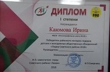 Поздравляем Каюмову Ирину с дипломом 1 степени в районном конкурсе лидеров детских и молодежных общественных объединений "Лидер Советского района 2018" в номинации "14-15 лет"