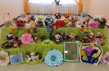В день мамы учащиеся нашей школы организовали выставку поделок " Цветы в подарок"
