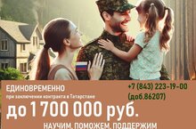 Ведется набор на военную службу по контракту. Единовременная выплата до 1,7 млн. рублей. Заработная плата от 210 тысяч рублей. Номер телефона для связи - 7(843) 223-19-00 (доб. 86207)