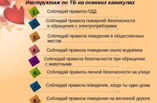 С началом каникул детей подстерегает повышенная опасность на дорогах, в близи ЖД путей, у водоемов, в лесу, на игровых площадках, во дворах. Этому способствует любопытство детей, наличие свободного времени, а главное - отсутствие должного контроля со стороны взрослых. Чтобы школьники были отдохнувшими, здоровыми и живыми, надо помнить ряд правил и условий при организации их отдыха: формируйте у детей навыки обеспечения личной безопасности; проведите с детьми индивидуальные беседы, объяснив важные правила, соблюдение которых поможет сохранить жизнь; решите проблему свободного времени детей.