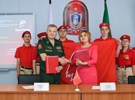 Сегодня подписали Соглашение о сотрудничестве с руководителем татарстанского филиала фонда «Защитники Отечества» Удачиной Гузель Любисовной. Юнармия Татарстана и Фонд будут сотрудничать в вопросах социальной адаптации ветеранов СВО, оказания помощи семьям раненых и погибших героев, привлечение ветеранов к военно-патриотической работе с подрастающим поколением. Председатель РООВ (и) "Союз ветеранов РТ" генерал-майор Бородин Александр Ильич отметил высокий авторитет фонда большие возможности в совместной работе фонда и Юнармии.