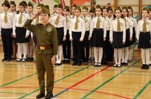 21 февраля в нашей школе прошел конкурс - смотр строя и песни. Ученики с трепетом готовились к этому мероприятию. Чеканя шаг, ребята самозабвенно пели строевые песни. Волнение не помешало справиться с трудной задачей: ученики четко и правильно выполнили все упражнения. Год за годом в школе проходит это мероприятие и, несмотря на большую подготовку и трудности, ребята ждут этот смотр. Огромное спасибо хочется сказать всем классным руководителям и родителям, которые не жалели времени и сил и подготовили ребят к смотру!