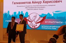 - Призера городской научно-практической конференции «Дни науки» на базе лицея №131 в секции физика – Ахатову Аишу, ученицу 7б класса и учителя физики Хамидуллину Фанзию Мансуровну!