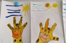Дети старшей группы 15 вместе с воспитателем Гулирой Масхутовной научились рисовать жирафа с использованием руки и предплечья.Обводили растопыренные пальцы руки загибая средний палец внутрь.