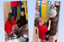 - Акция "Поделись улыбкой": знакомство детей с новыми друзьями, общение с малышами младших групп.