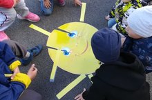 Сегодня в детском саду в гостях Солнышко. Лето уже старается с нами прощаться, но мы все еще хотим воспользоваться последними ласковыми деньками, радуемся дарам лета, проводим много времени на свежем воздухе. Мы помним, что задача детского сада удовлетворять естественную потребность детей в движении, создавая условия для активной деятельности.