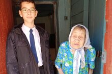 В предверии празднования 9 Мая 6в класс посетил на дому и поздравил ветерана-труженика тыла с праздником Победы!