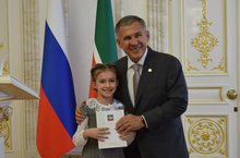 В целях повышения мотивации к получению знаний среди школьников Республики Татарстан и при поддержке правительства газеты "Комсомольская правда" в Республике Татарстан был реализован проект "Президентский дневник". По итогам конкурса, одной из победительниц стала наша ученица 3В класса Зарипова Алина. 31 мая в Казанском Кремле прошла торжественная церемония награждения с участием Президента Республики Татарстан Рустама Нургалиевича Минниханова. Коллектив школы искренне поздравляет Алину и желает ей дальнейших успехов!