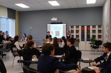 Благодаря сотрудничеству с Российским Государственным Университетом Правосудия, учащиеся 9 классов получили прекрасную возможность посещать занятия английского языка с носителями. Коммуникативная методика занятий значительно повышает уровень владения языком, убирает языковой барьер, расширяет словарный запас. Учащиеся были полностью погружаются в англо-язычную среду, что способствует развитию у учеников возможности спонтанного использования английского языка.