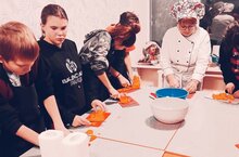 В целях профориентационной работы в школе - интернате 11 каждый четверг проходят кулинарные мастер- классы по приготовлению блюд.Ребят учат готовить лучшие шеф - повара и повара кафе и ресторанов нашего города.Многие блюда дети уже могут приготовить самостоятельно.