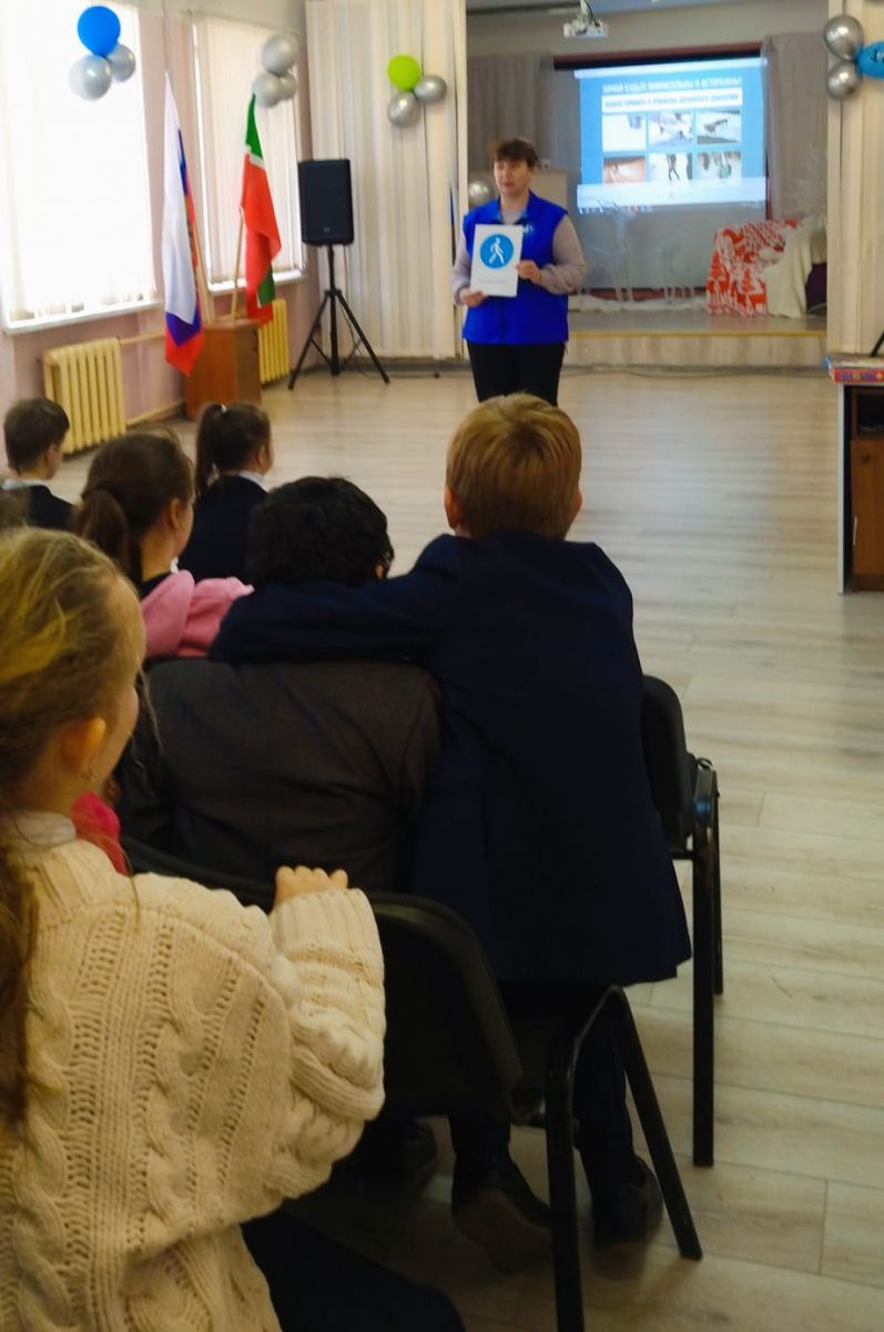 В ходе встречи Лилия Масгутовнарассказала учащимся о том, что основной способ профилактики травм зимой – это осмотрительность и осторожность при передвижении по тротуарам и дорожкам, пешеходным переходам на мостовой, особенно при наличии снежных заносов и гололеда. Важно правильно, соответственно погодным условиям, подобрать одежду и обувь. Соблюдать правила безопасного поведения при занятии зимними видами спорта и играми, не оставлять детей без присмотра. Водители транспортных средств должны строго соблюдать правила дорожного движения и проявлять повышенное внимание, соблюдать скоростной режим и максимально внимательно относиться ко всем участникам дорожного движения.