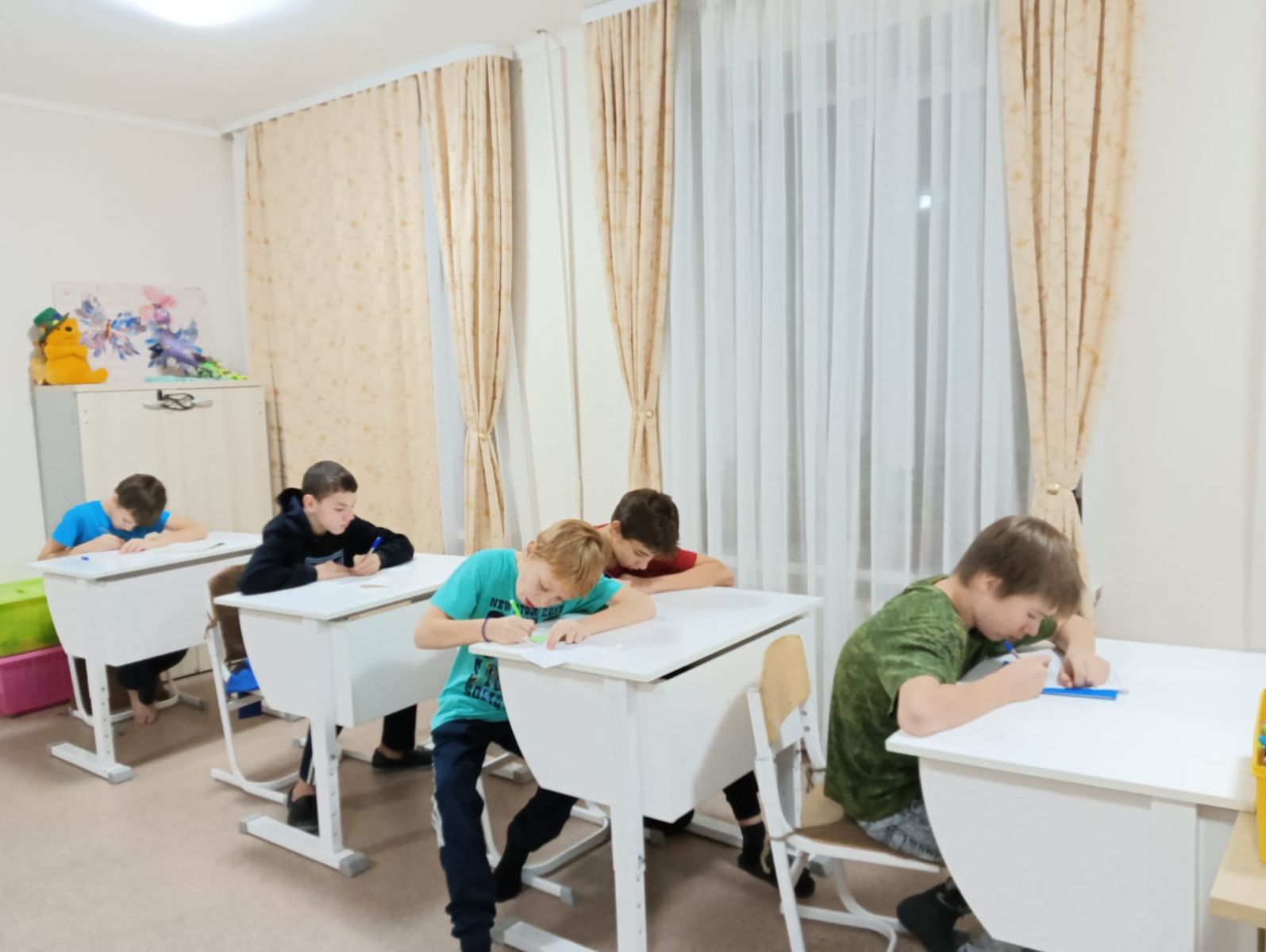 | У нас учатся: | 165 человек, из них 36 воспитанников(в том числе 2 дошкольников), приходящих - 38 человек, на дому - 91 |