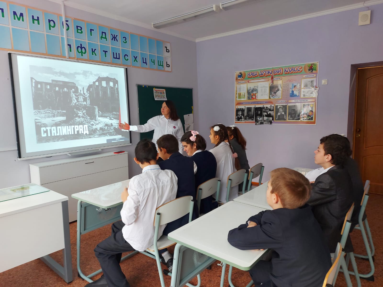 В преддверии героической обороны города Сталинграда и в целях воспитания чувства патриотизма, гражданственности, в школе для обучающихся 5 - 9 классов, советником директора по воспитанию совместно с классными руководителями был проведён кинолекторий «Сталинград». После просмотра документального фильма "Сталинград", 1943 г. режиссера Л. Варламова учащиеся поделились впечатлениями от увиденного и ответили на вопросы викторины, высказали своё мнение о подвиге героев, о том, почему русскому народу удалось одержать победу в битве.