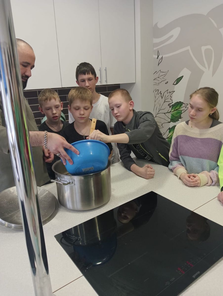 Опубликовано: 18.04.202418.04 в рамках профориентационной работы с детьми был проведен кулинарный мастер-класс. Шеф-повар ресторана " Ханума" Максуд Джураев научил воспитанников готовить макароны с тушенкой и салат "Овощной". Мастер - класс проводится благодаря БФ " Созвездие"