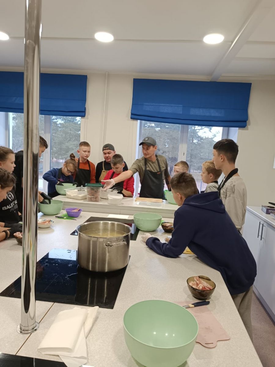 Опубликовано: 17.10.202417.10.24 Прошёл кулинарный мастер-класс. Шеф-повар ресторана "Некрасов " Айдар Рустемович приготовил с детьми куриные крылышки во фритюре, а так же запекали картофель. Дети с заданием справились. Всё получилось очень вкусно.