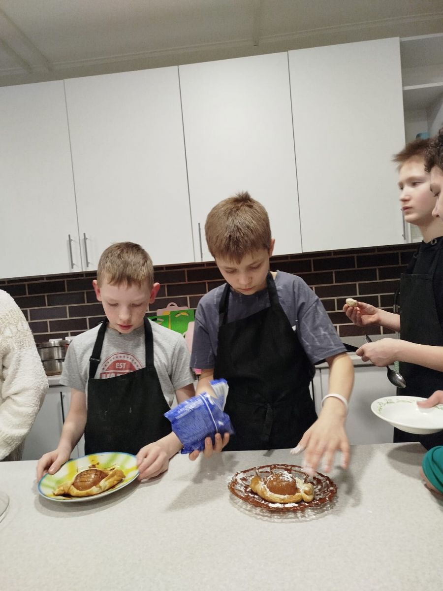 Опубликовано: 06.02.202506.02.2025 г, с детьми нашего интерната проводился мастер-класс "Технология приготовления десертов: грушевый штрудель" . Мастер-класс проводил шеф-повар Динар Мингазов с командой "Возрождение". Перед тем, как приступить к приготовлению десерта, дети повторили инструктаж по технике безопасности пользования столовыми приборами, ножом. Шеф-повар рассказал технологию приготовления, последовательность закладки ингредиентов. Ребята самостоятельно нарезали груши мелкими кубиками. На сковороде растопили сливочное масло, выложили грушу, добавили сахар, молотый орех и корицу. Раскатали тесто и распределили ровным слоем грушевую начинку. Затем завернули тесто в рулет и защипнули края. Сверху сделать несколько неглубоких надрезов. Во время приготовления с детьми повторили инструктаж по технике безопасности пользования ножом, соблюдения гигиены рук.
