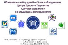 Запись начинается с 18 августа в ЦДТ "Детская академия" по адресу: