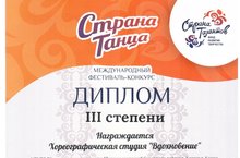 Поздравляем маленьких начинающих звездочек- х/а "Вдохновенье" (мл. группа 7-9 лет) (педагог Подъельникова Р.М.) с 3-м местом на Международном фестивале-конкурсе "Страна танца"!