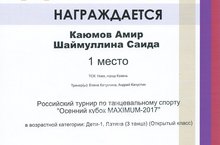 Российский турнир по танцевальному спорту «Осенний кубок Maximum — 2017» прошел 12 ноября в г. Йошкар-Ола. Воспитанники объединения спортивного танца «Ника» Центра Детского творчества «Танкодром» приняли участие в турнире.