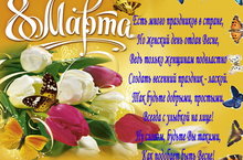 Милые женщины, от всего сердца поздравляем вас 8 марта. Пусть сбудутся все ваши мечты! Пусть в вашей жизни будет больше позитива! Желаем, чтобы в этот праздник вас окружали только искренние улыбки! С 8 марта!