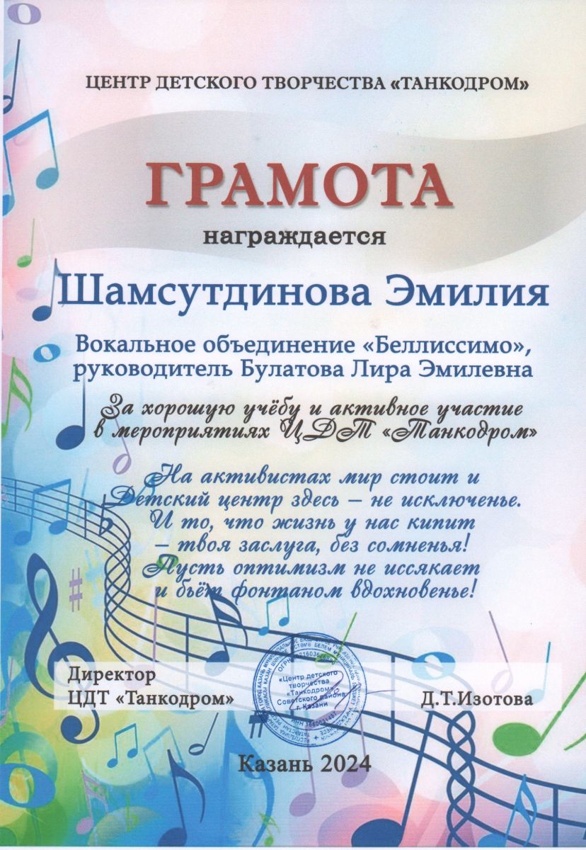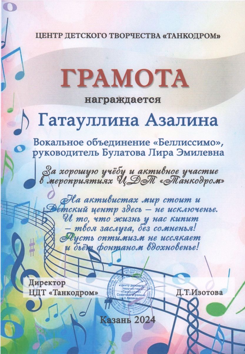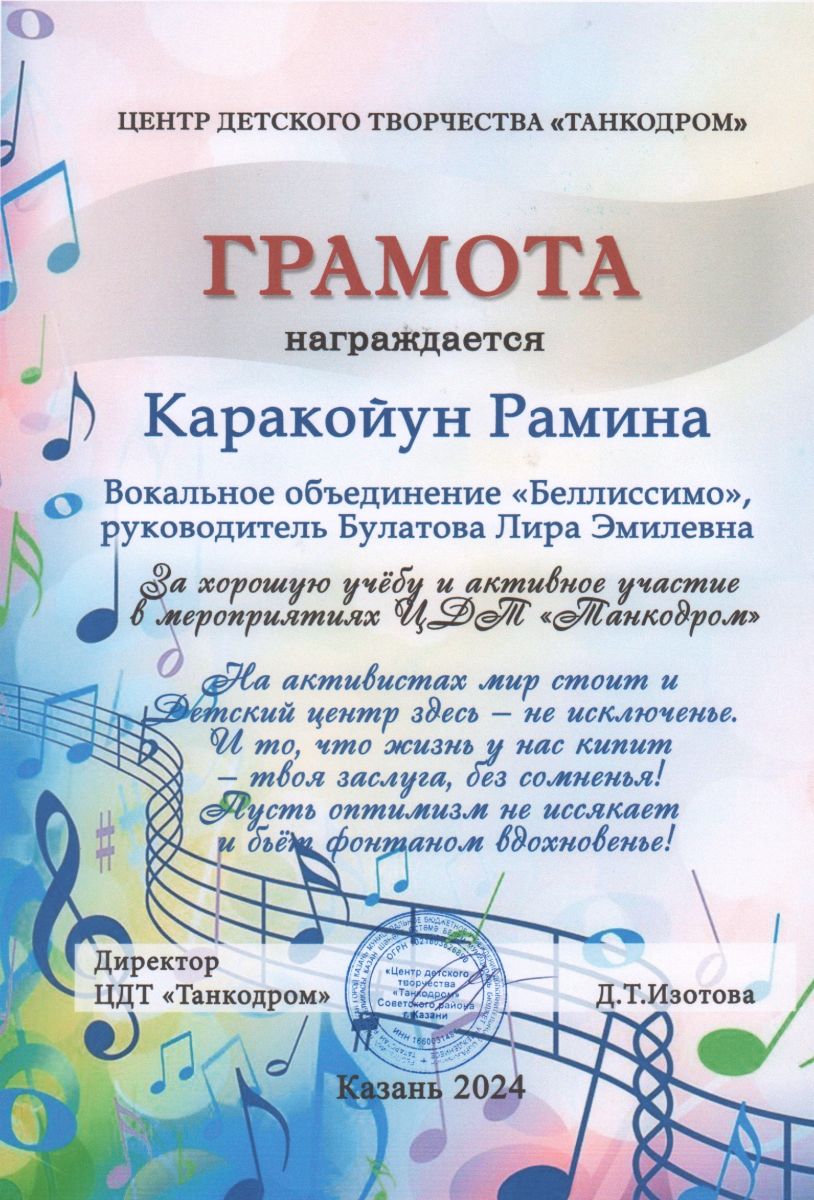 Учащиеся объединения являются призерами городских и республиканских конкурсов. От директора детского центра Д.Т. Изотовой учащиеся получили грамоты за активное участие в мероприятиях центра.