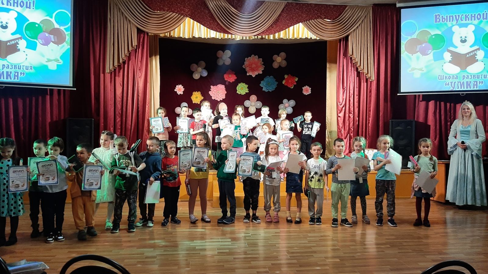 25 апреля 2024г. состоялся праздник "Выпускной в школе развития "Умка" - "По дорогам знаний". Ребята прошли испытания с героем праздника "Королевой знаний" - участвовали в викторинах, конкурсах и показали преобретенные знания. Также посмотрели концерт, которые подготовили учащиеся вокального объединения "Беллиссимо". Все выпускники получили дипломы об окончании школы и подарки.