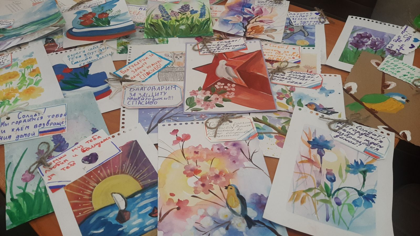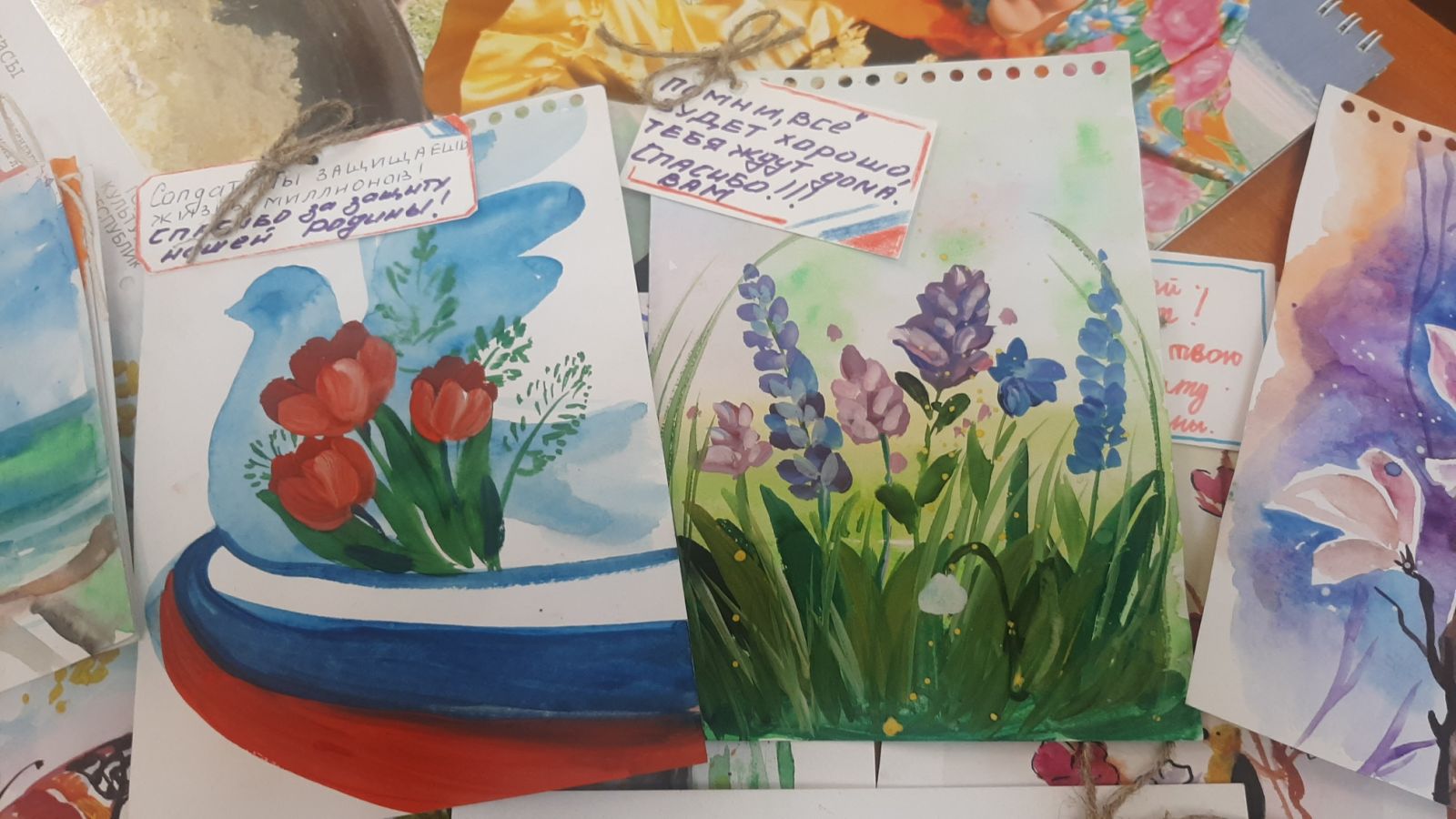 Учащиеся объединения "Юный художник" (рук. Мухаметзянова С.Р.) провели патриотическую акцию «Письмо солдату». Каждый учащийся нарисовал свой рисунок с атмосферой весны со словами поддержки и пожеланиями крепкого здоровья и скорейшего возвращения домой солдатам, которые сегодня участвуют в СВО.