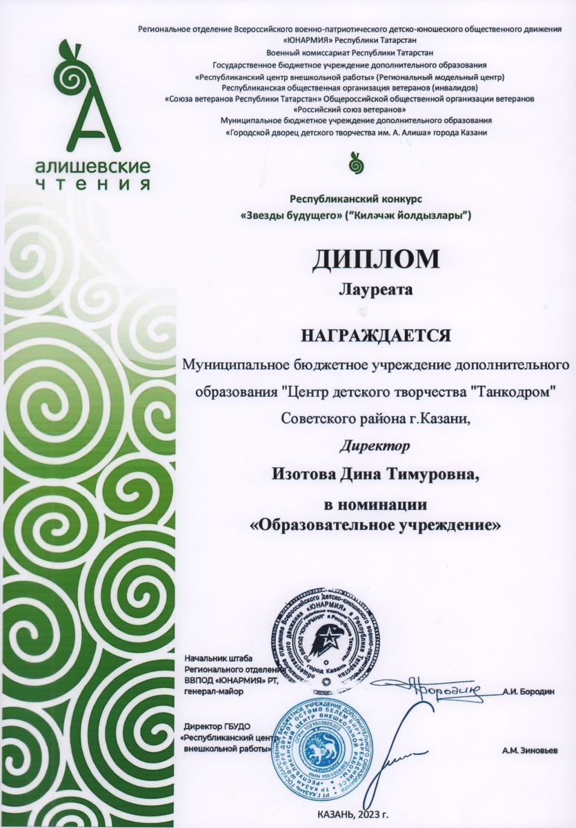 10 февраля 2023г.в рамках XII Республиканских Алишевских педагогических чтений «Отечественная гуманистическая педагогика: исторические уроки, педагогические идеи и современное образование», посвященных 200-летию со дня рождения К. Д. Ушинского прошел конкурс «Звезды будущего».