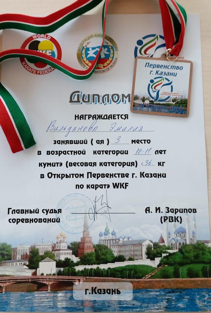 Поздравляем победителя Вильданову Эмилию занявшую 3 место в Открытом первенстве по каратэ г. Казани (руководитель Осипова Л.А.)!