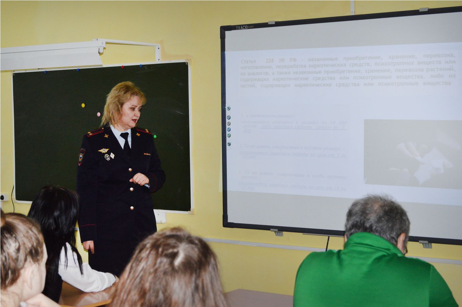 16 ноября 2022г. в ЦДТ "Танкодром" в рамках межведомственной комплексной оперативно-профилактической операции "Дети России" была организована встреча учащихся отдела по работе со старшеклассниками с оперативно-уполномоченным по особо-важным делам отдела по контролю за оборотом наркотиков МВД РТ подполковником полиции Крыловой С.М. Была проведена беседа на предупреждение распространения наркомании среди несовершеннолетних, выявление фактов их вовлечения в преступную деятельность, связанную с незаконным оборотом наркотиков, а также повышение уровня осведомленности о последствиях потребления наркотиков и об ответственности, предусмотренной законодательством Российской Федерации за их незаконный оборот.