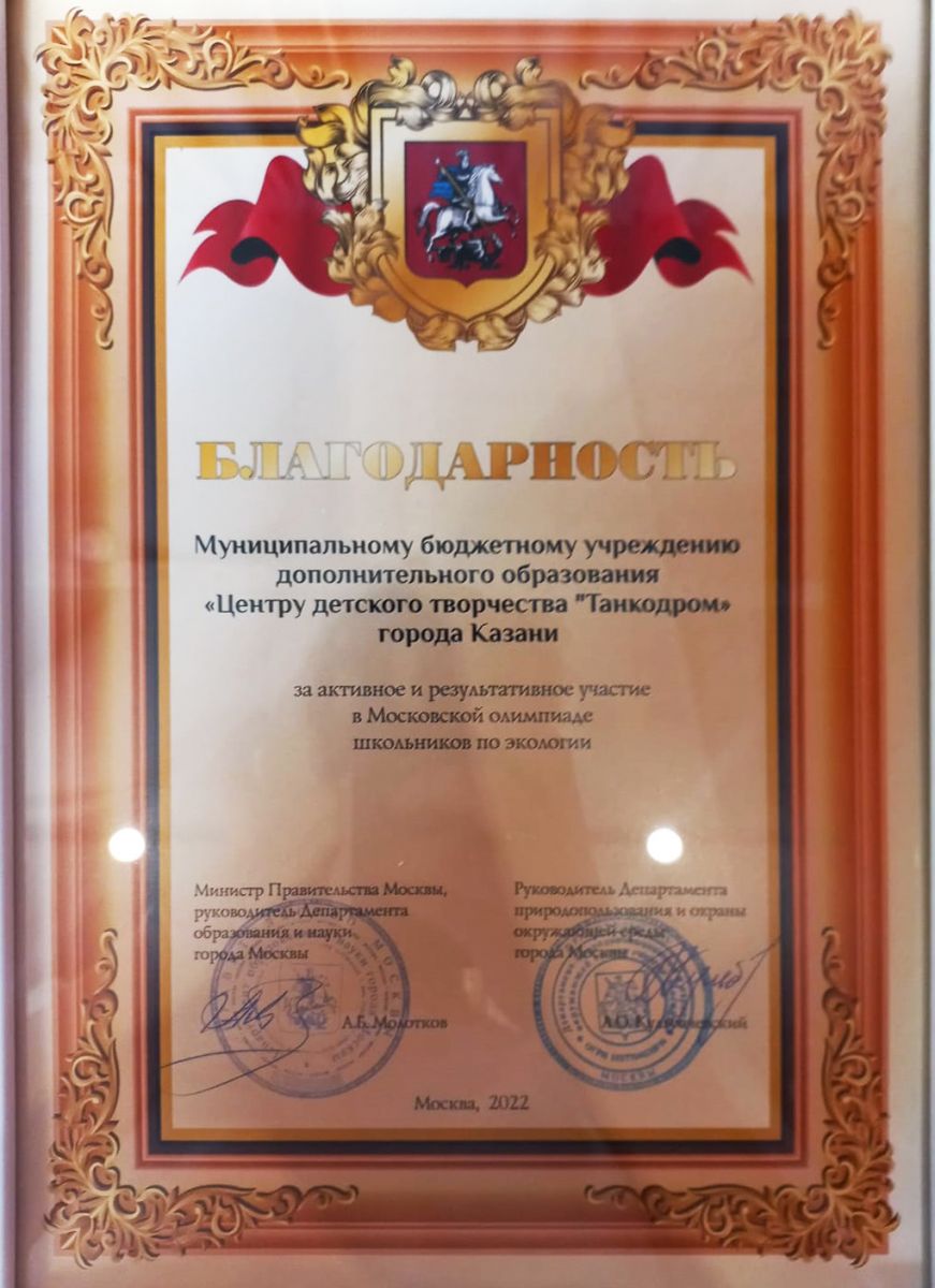 МБУДО «ЦДТ «Танкодром» Советского района г. Казани является региональной площадкой проведения заключительного этапа МОШ по экологии в Республике Татарстан, на базе которой в текущем учебном году в приняли участие 50 школьников из Казани, Самары и Санкт-Петербурга.