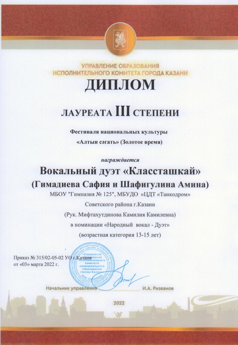Поздравляем победителей Фестиваля национальных культур "Алтын сэгат"(Золотое время)!
