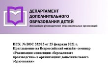 11-12 марта 2021 года состоится Всероссийский онлайн-семинар: «РЕАЛИЗАЦИЯ КОНЦЕПЦИИ «БЕРЕЖЛИВОГО ПРОИЗВОДСТВА» В ОРГАНИЗАЦИЯХ ДОПОЛНИТЕЛЬНОГО ОБРАЗОВАНИЯ».