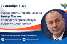 Всероссийская встреча с родителями руководителя Федеральной службы по надзору в сфере образования и науки Анзора Музаева пройдет 19 октября 2020 года в 11:00 мск. 13.10.2020