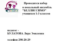 Открыта запись в вокальный ансамбль "БЕЛЛИССИМО" 20.08.2020