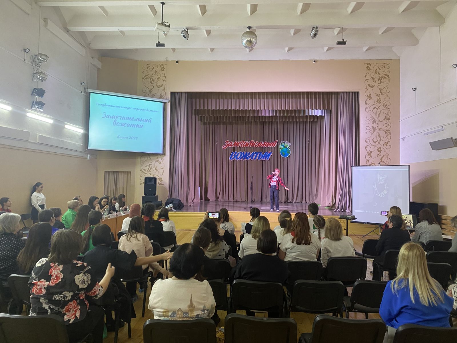 6 апреля 2024 года на базе ЦДТ "Азино " состоялся Республиканский этап конкурса отрядных вожатых «Замечательный вожатый -2024». Участие в конкурсе приняли 18 районов нашей республики. Победителем и обладателем Гран - При стал Акмалов Рустам город Казань, Советский район.