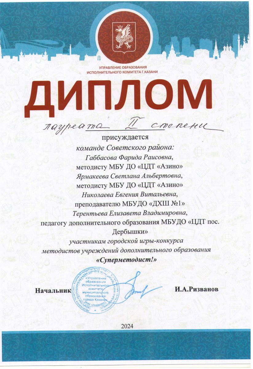 Поздравляем наш центр получил Диплом Лаурета II степени в участии городской игры - конкурса "Супер методист -2024!!!!