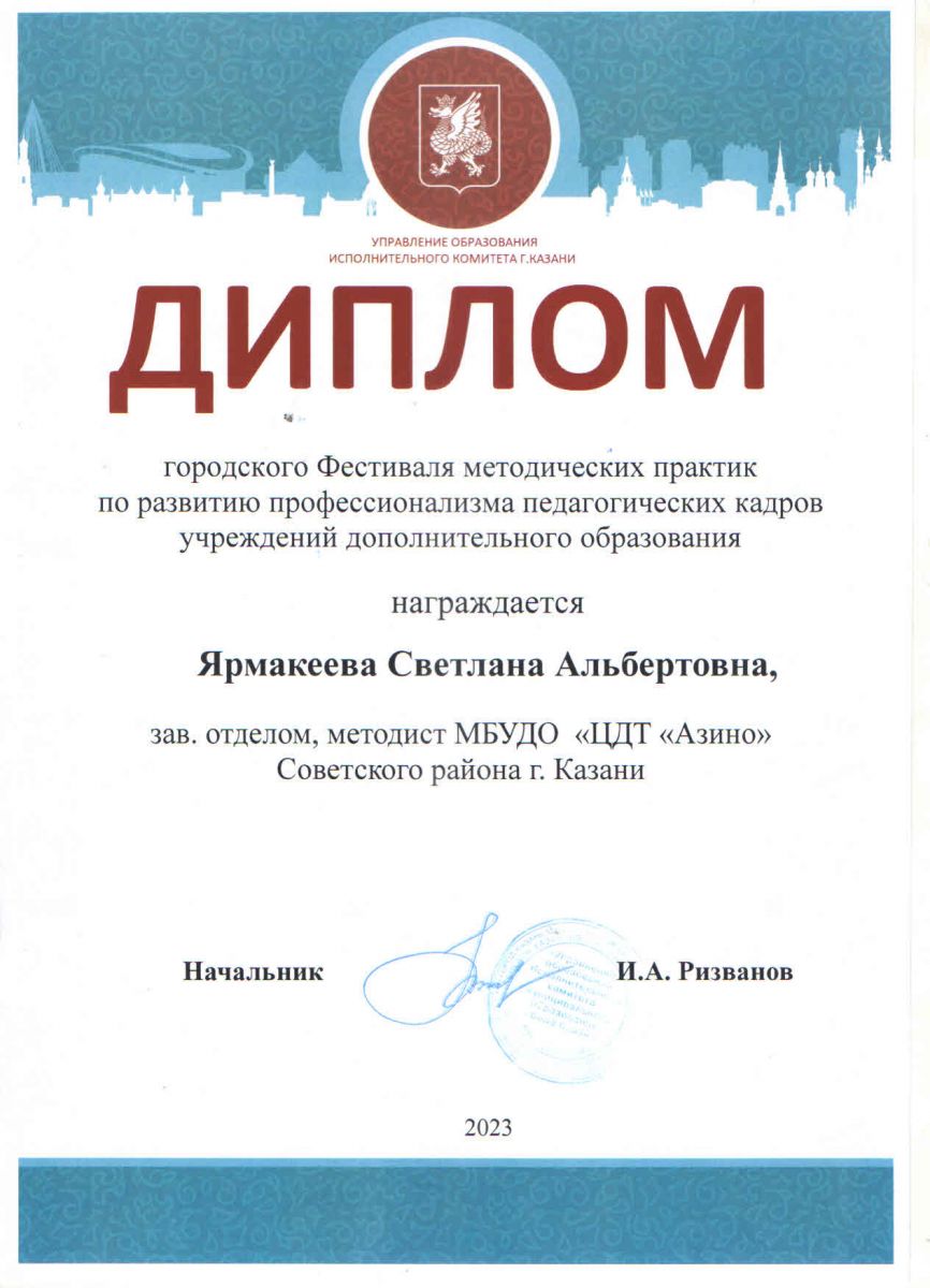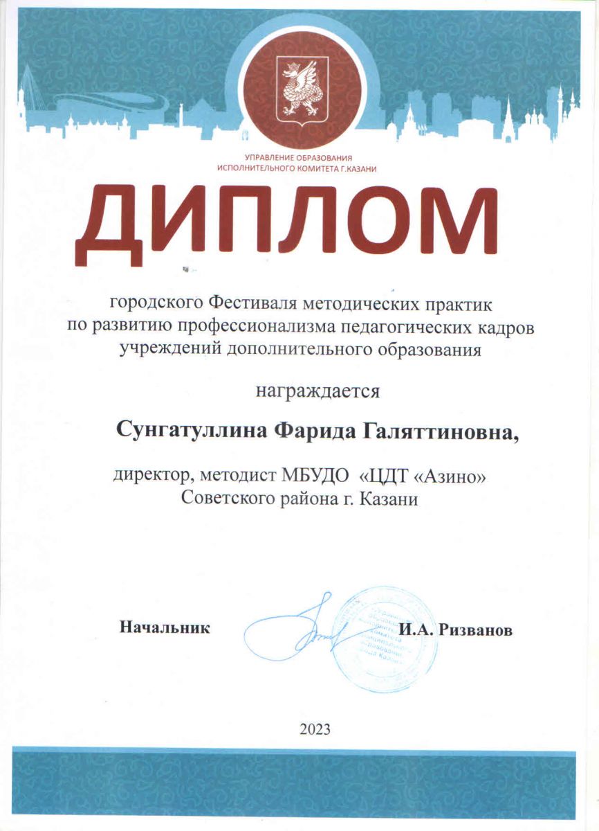 Программа финала Фестиваля была подготовлена отделом инновационной и опытно -экспериментальной работы и методическим отделом. Самое активное участие в Фестивале приняли педагоги и методисты нашего центра, под руководством и при непосредственном участии в финале директора ЦДТ «Азино» Сунгатуллиной Ф.Г.