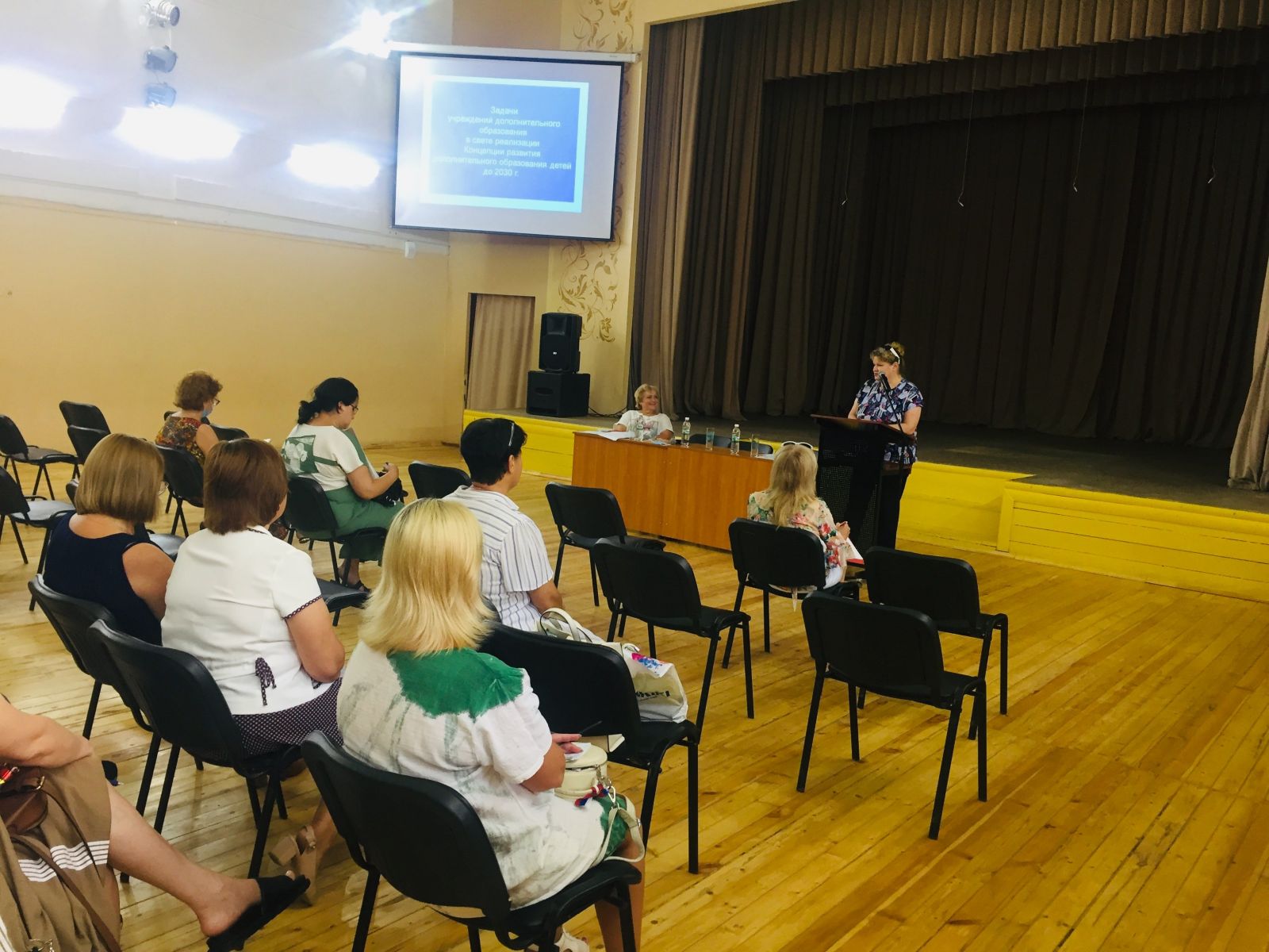 С темой : "Задачи учреждений дополнительного образования в свете реализации Концепции развития дополнительного образования детей до 2030 г." выступила Ярмакеева С.А,заведующий отделом ЦДТ "Азино".