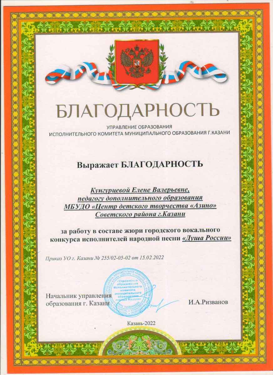25 февраля 2022 года в Центре детского творчества «Азино» прошёл районный конкурс патриотической песни «Я люблю тебя, Россия!» В конкурсе приняли участие учащиеся 14 общеобразовательных учреждений и 6 учреждений дополнительного образования. Жюри отметило прекрасную организацию и высокий уровень подготовки учащихся.