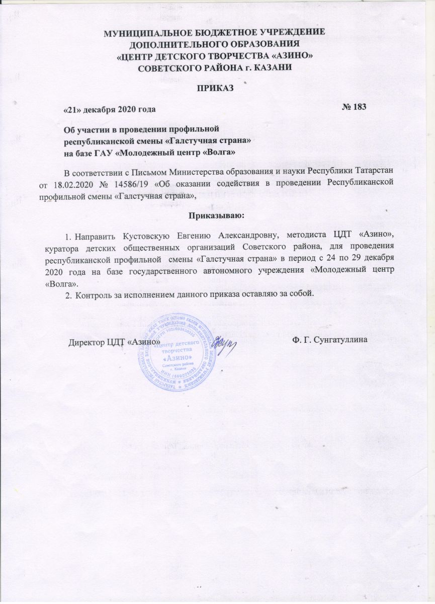 Муниципальное бюджетное учреждение дополнительного образования «Центр детского творчества «Азино» Советского района г. Казани»