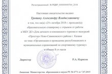 Почетная грамота 100-летие системы детского туризма 07.11.2018