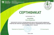 Творчество Чингиза Айтматова в контексте традиции Востока-Запада" 20.11.2018