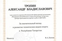 Грамота Министерство по делам молодежи и спорту РТ 12.04.2018